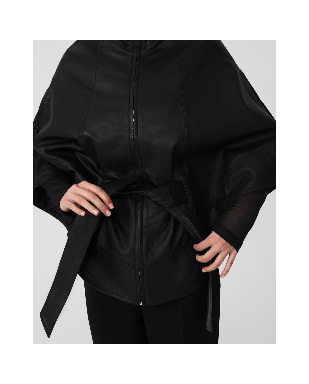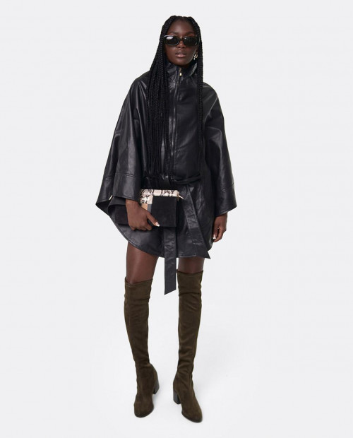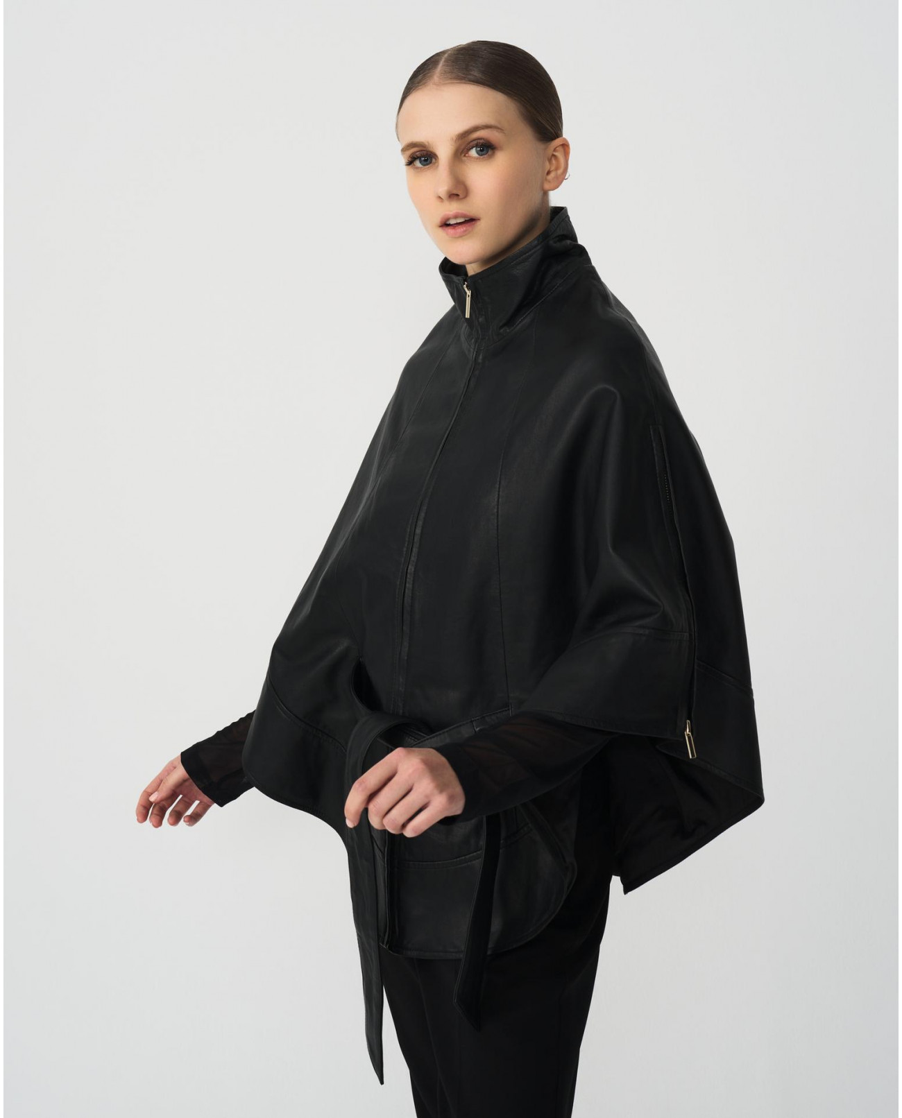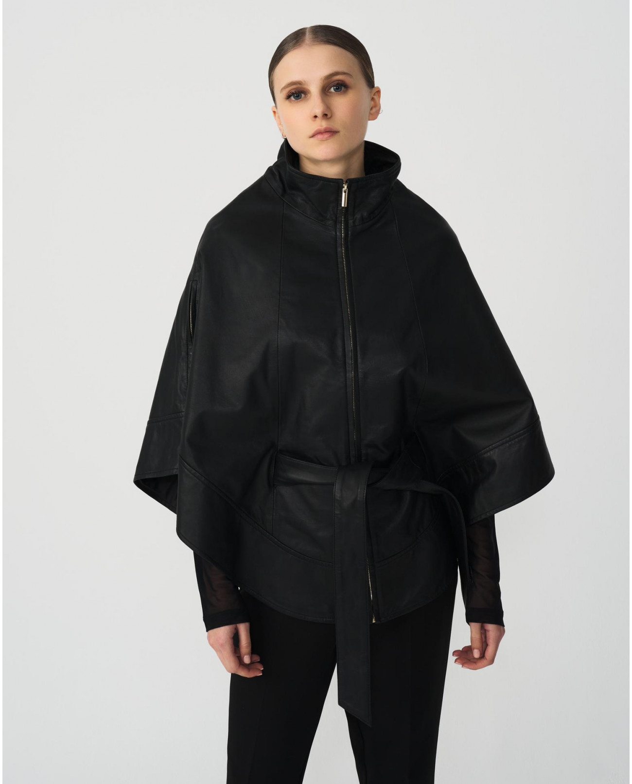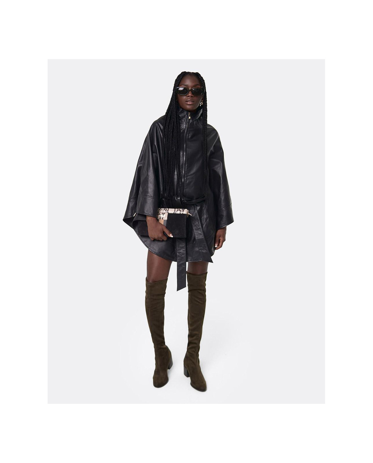 Black cape with zipper closure and adjustable belt, with batwing sleeves. Made of high quality leather and made in an elegant and sophisticated way. CUPLÉ garment that you can combine with skinny jeans.
