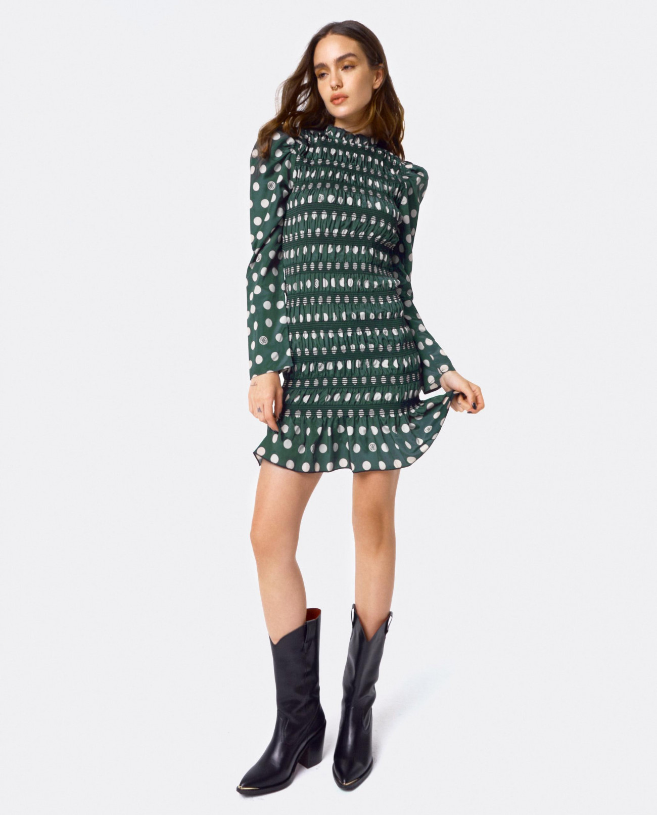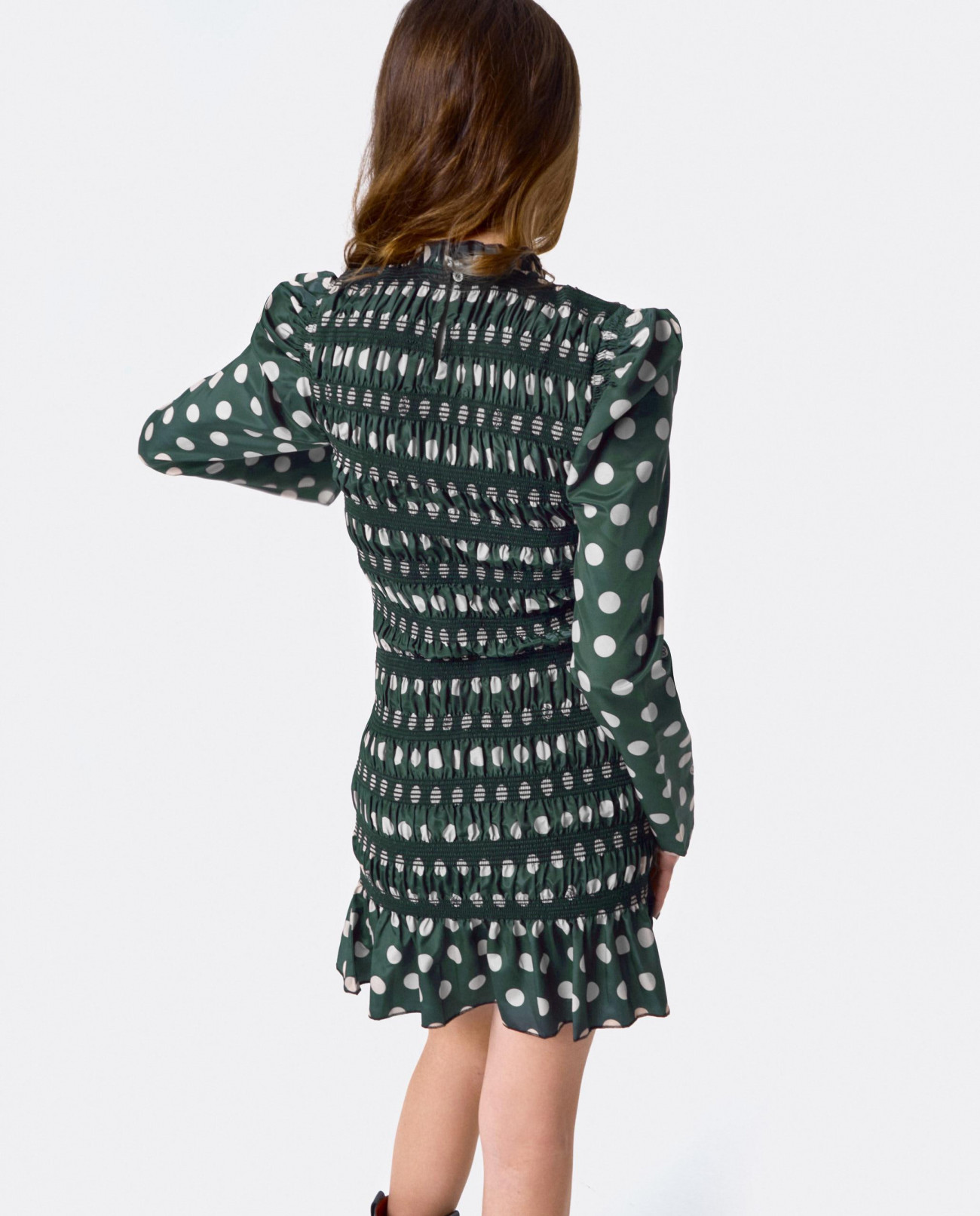 GREEN DOT CREPE RUBBERED MINI DRESS