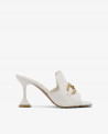 THESE ELEGANT WHITE SANDALS WILL ATTRACT EVERY EYE FOR ITS EYE-CATCHING GOLD CLASP ON THE INSTEP AND HEEL, ACHIEVING AN OUTSTANDING STYLE.