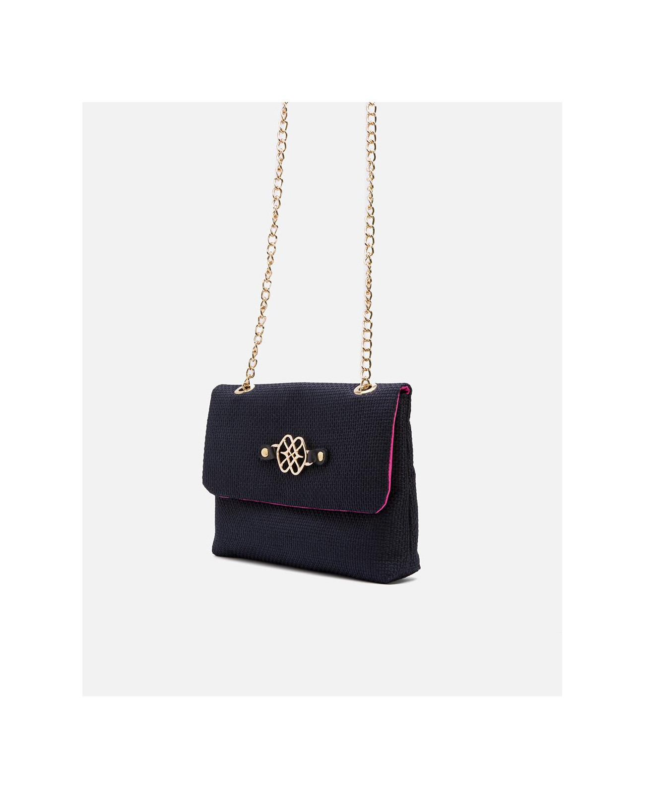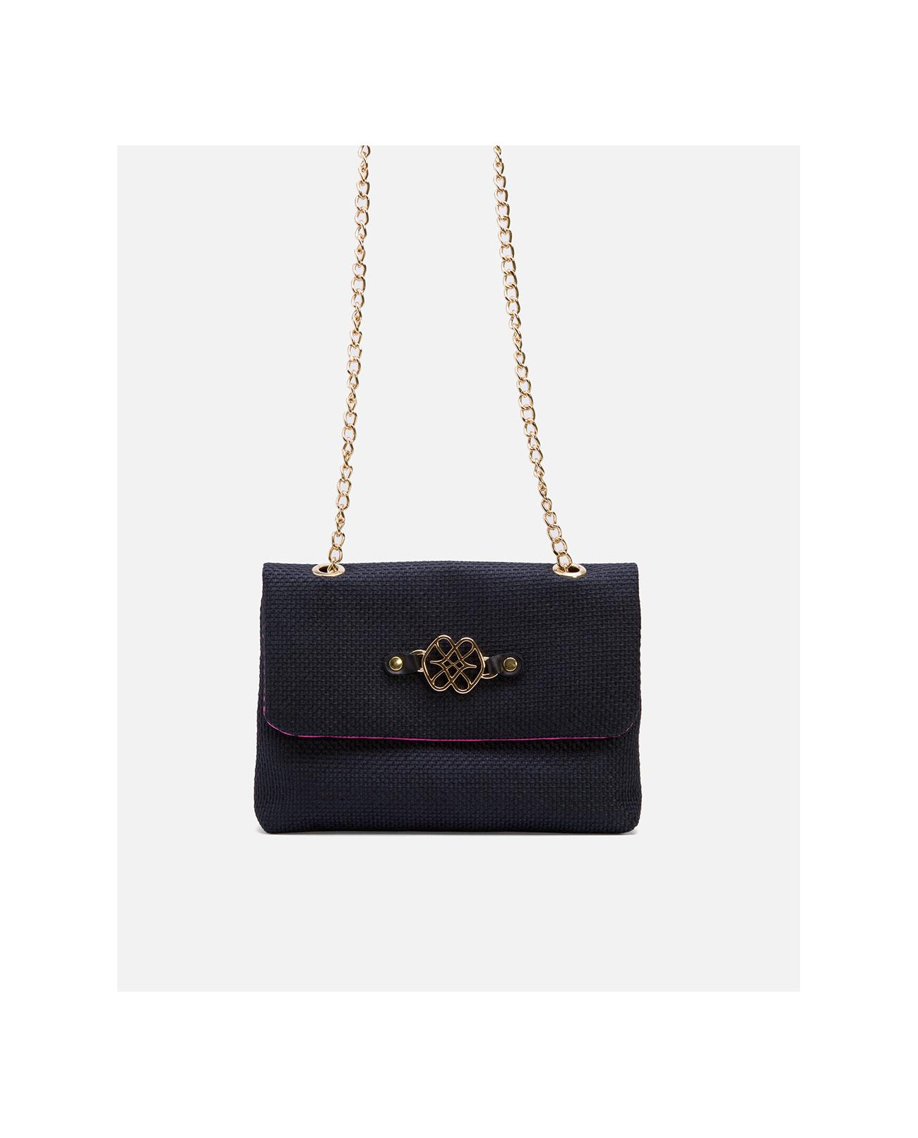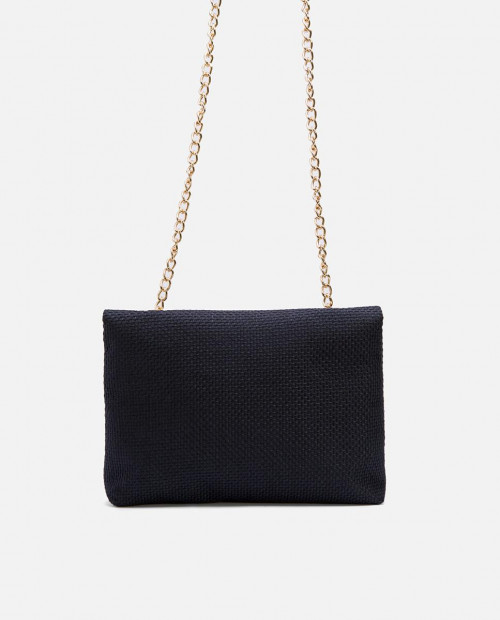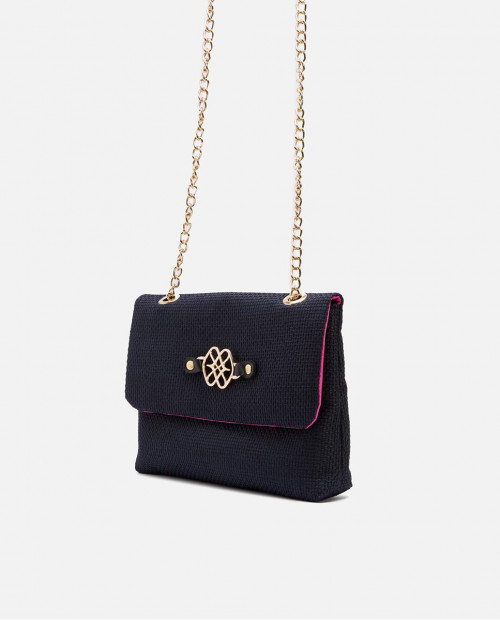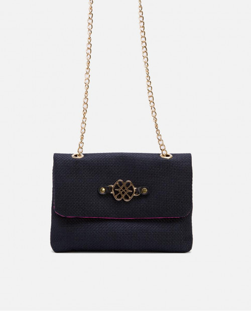 BEAUTIFUL HANDBAG IN BLACK COLOR WITH GOLD DETAIL ON THE FRONT WITH THE CUPLÉ LOGO AND CHAIN, MAGNET CLOSURE ON THE FLAP.