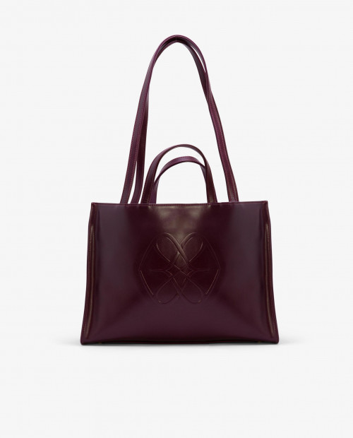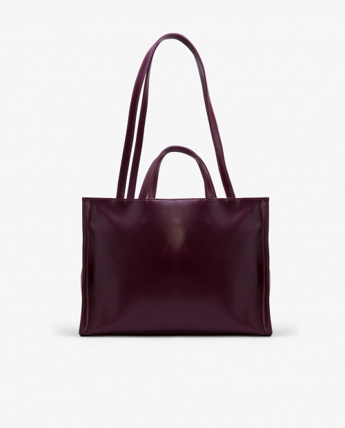 Large bag made of burgundy-colored techno leather. This model has a double handle, giving it the versatility you need in your everyday life. With logo Cuplé in relief.