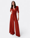 MONO LARGO DE PUNTO DE COLOR BURDEOS, CON CUELLO V, MANGAS CORTAS Y PATA DE ELEFANTE. SIÉNTETE CONFORTABLE Y ELEGANTE CON ESTE MONO IDEAL PARA ESTA TEMPORADA PRIMAVERA-VERANO.